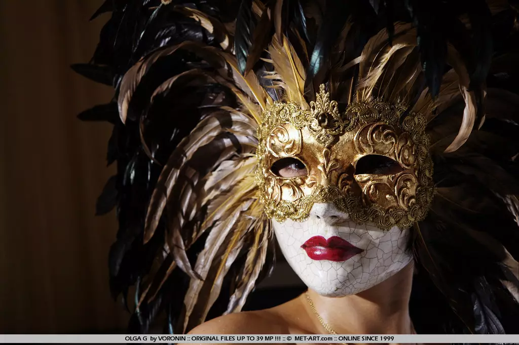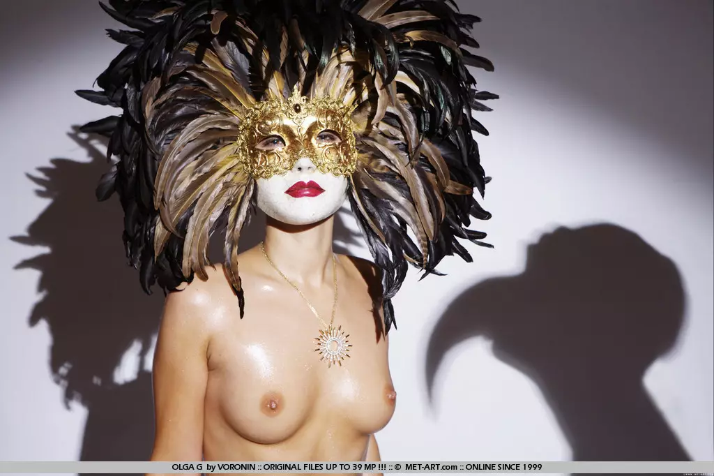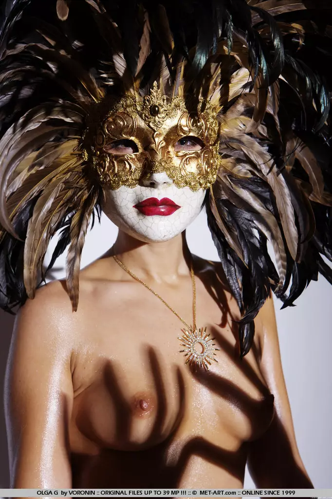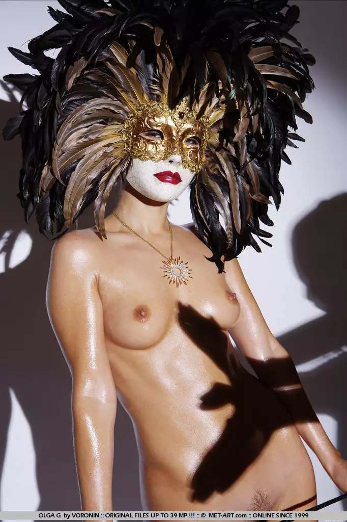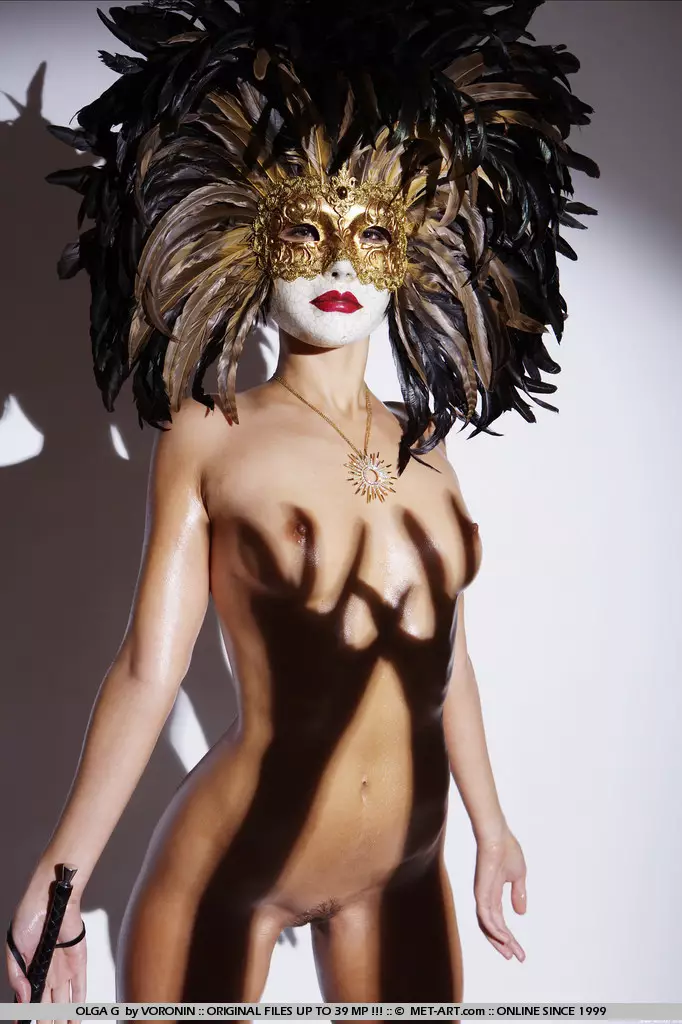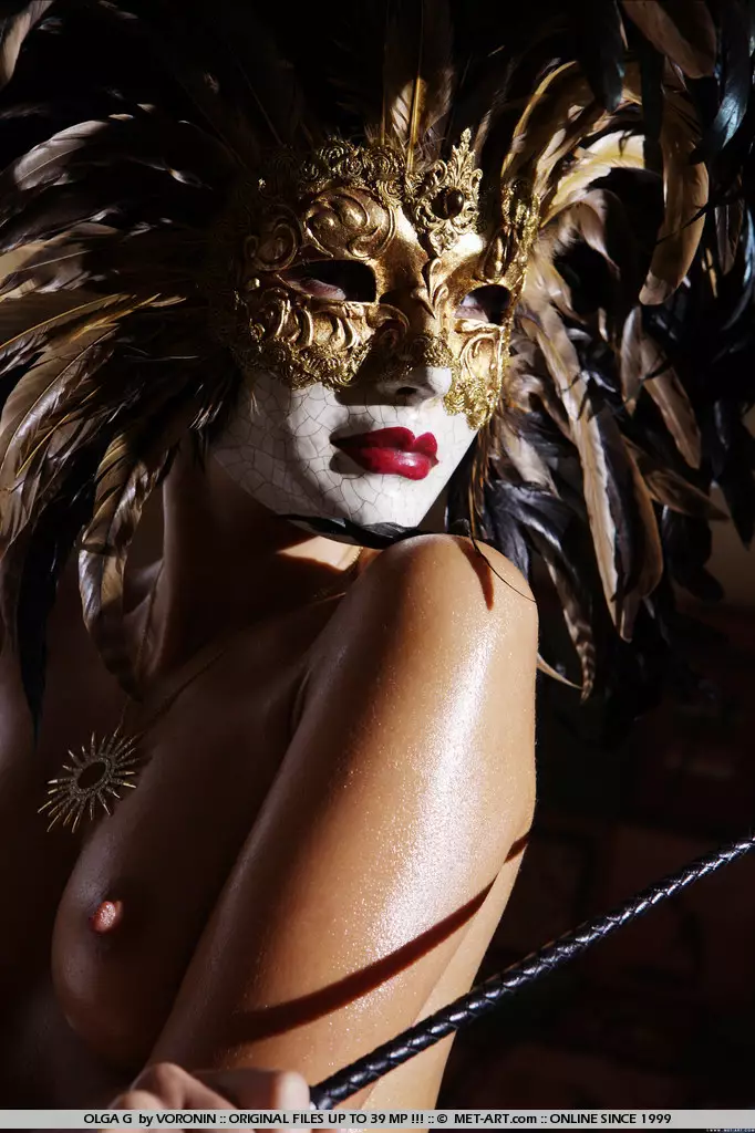 Намасленная гламурная модель со стоячей грудью Olga G любит позировать в маске и с кнутом — Olga G