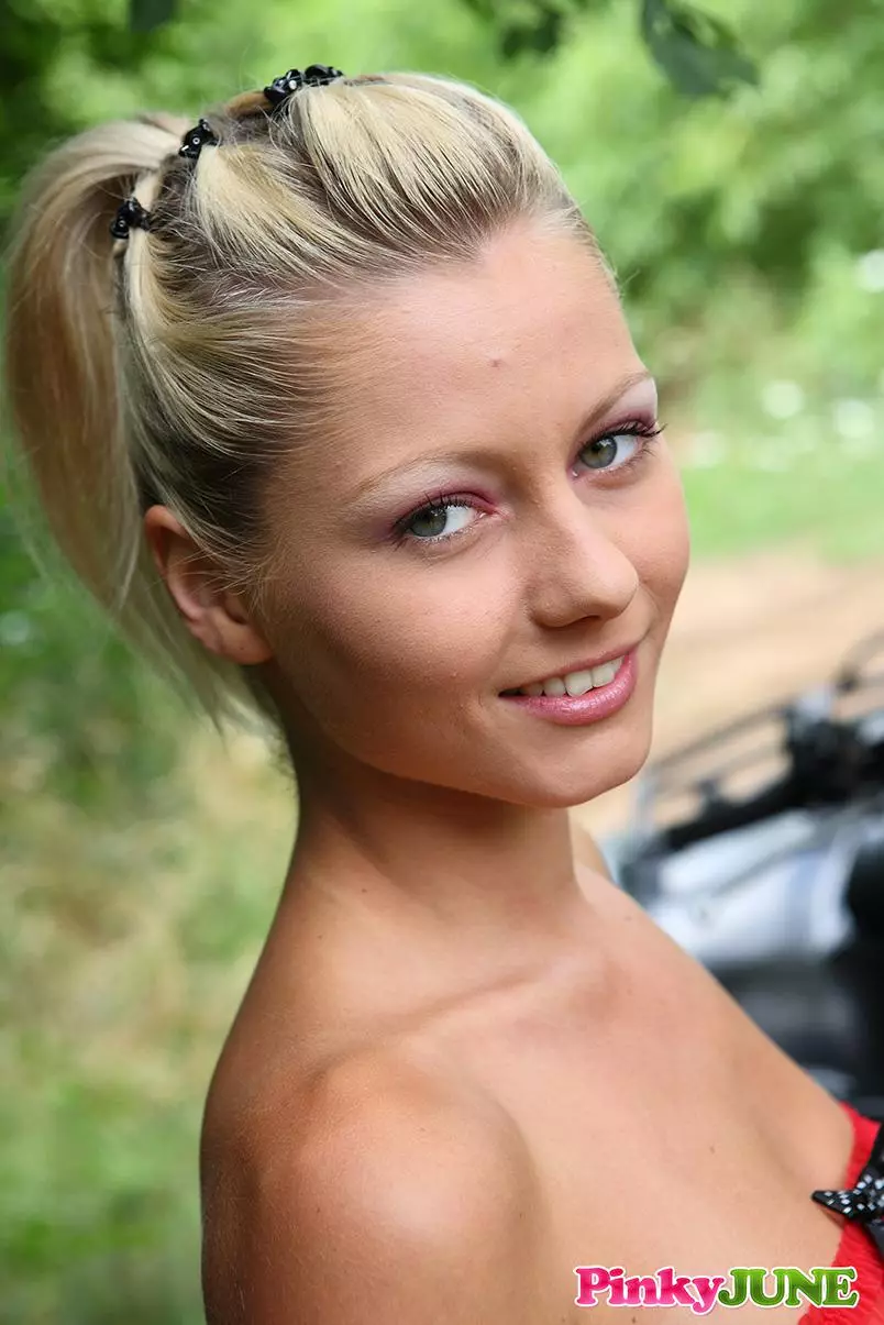 Развратная Pinky June обнажает киску и сиськи — Pinky June