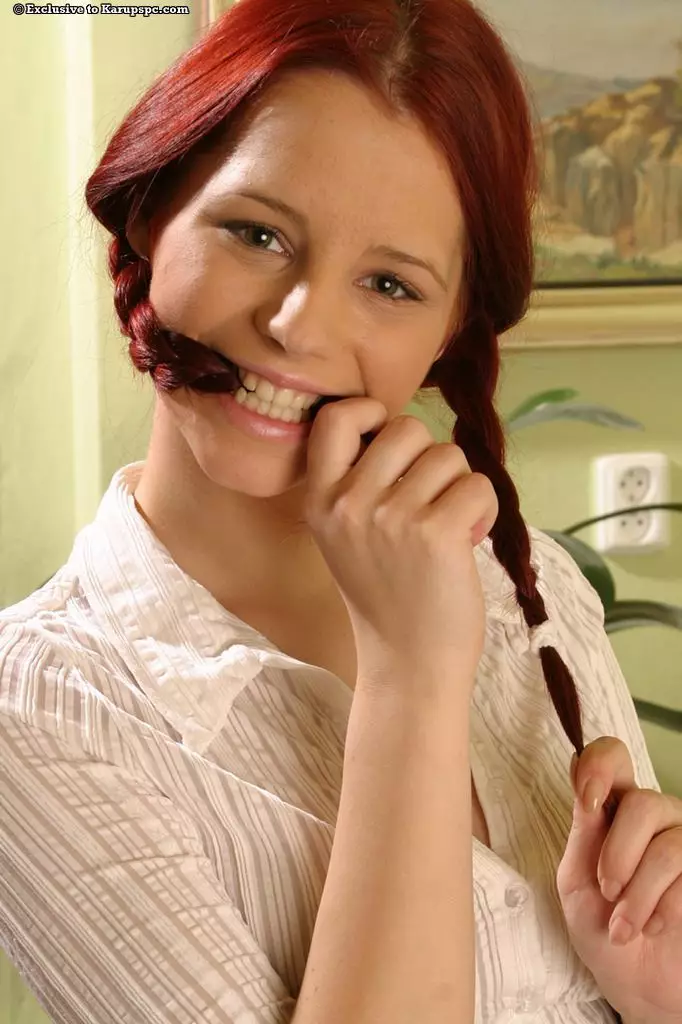 Шлюхастая рыжая детка Piper Fawn раздевается и мастурбирует бритую киску на рабочем месте — Piper Fawn
