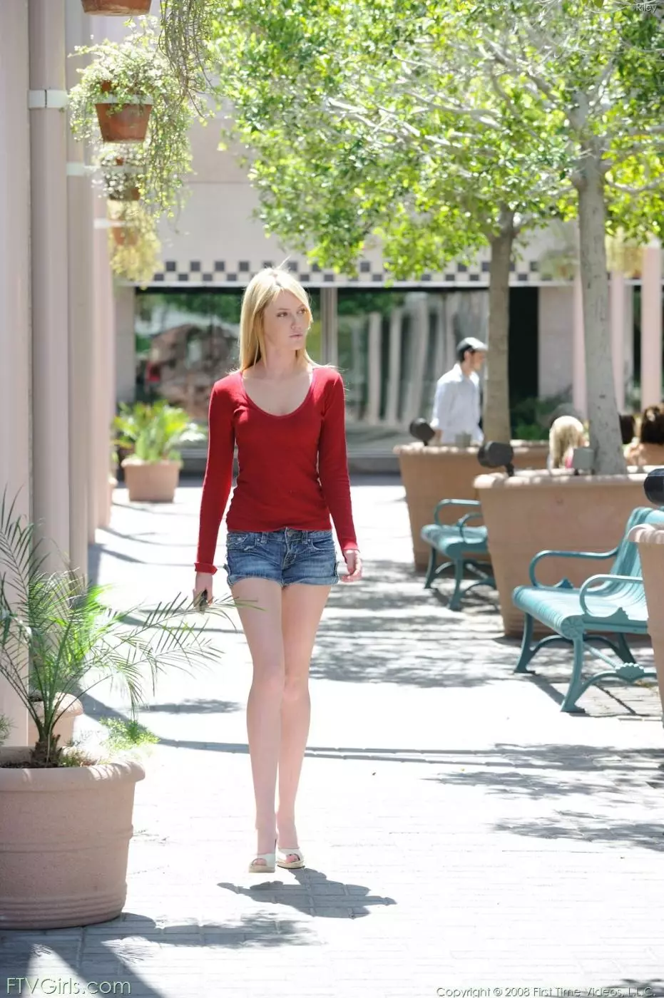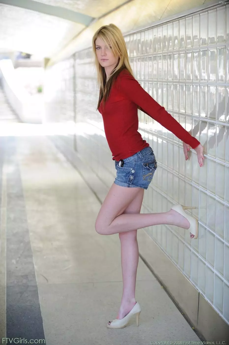 Девочка-подросток с бритой киской Riley Ray полностью раздевается, гуляя по улице — Riley Ray
