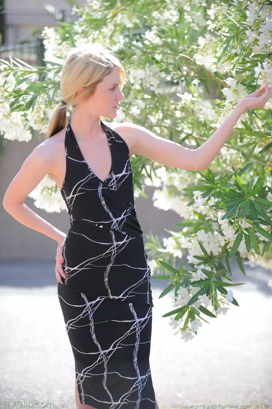 Развратная блондинка Riley Ray показывает свои интимные части тела, сняв свое черное платье — Riley Ray