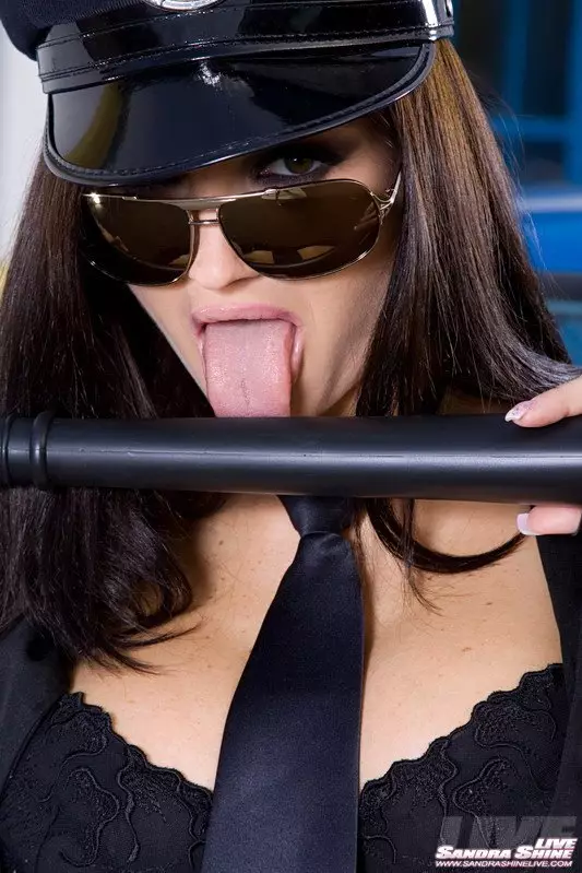 Sandra Shine позирует в сексуальной полицейской форме и трахает дилдом свою гладкую бритую киску — Sandra Shine