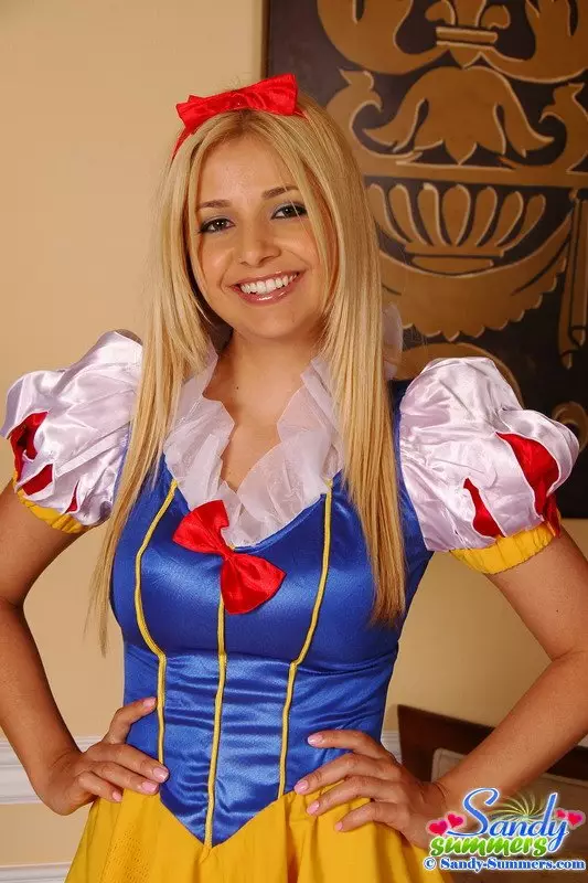 Аппетитная златовласка Sandy Summers в сексуальном национальном костюме и красных стрингах показывает стриптиз — Sandy Summers
