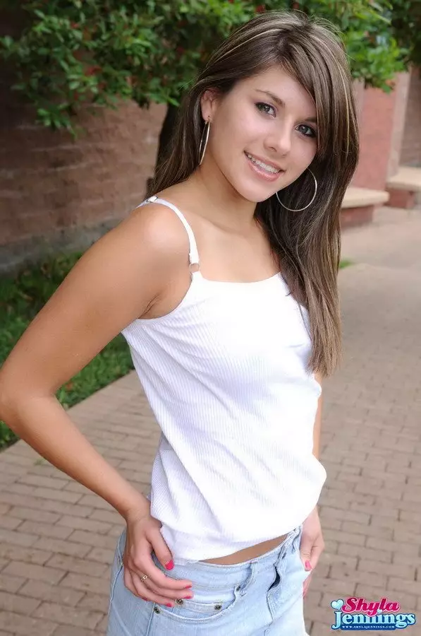 Юная милашка Shyla Jennings показывает маленькие титьки и бритую киску на природе — Shyla Jennings