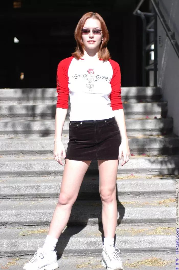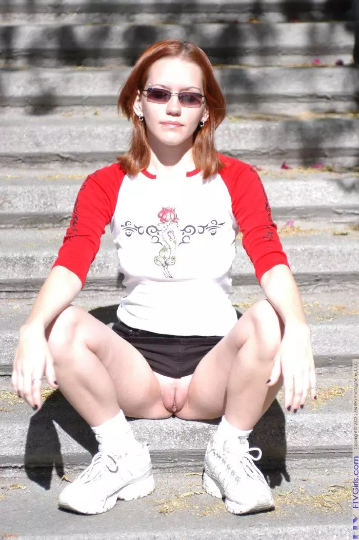 Рыжая Smokie Flame ласкает сиськи и показывает лысую киску — Smokie Flame