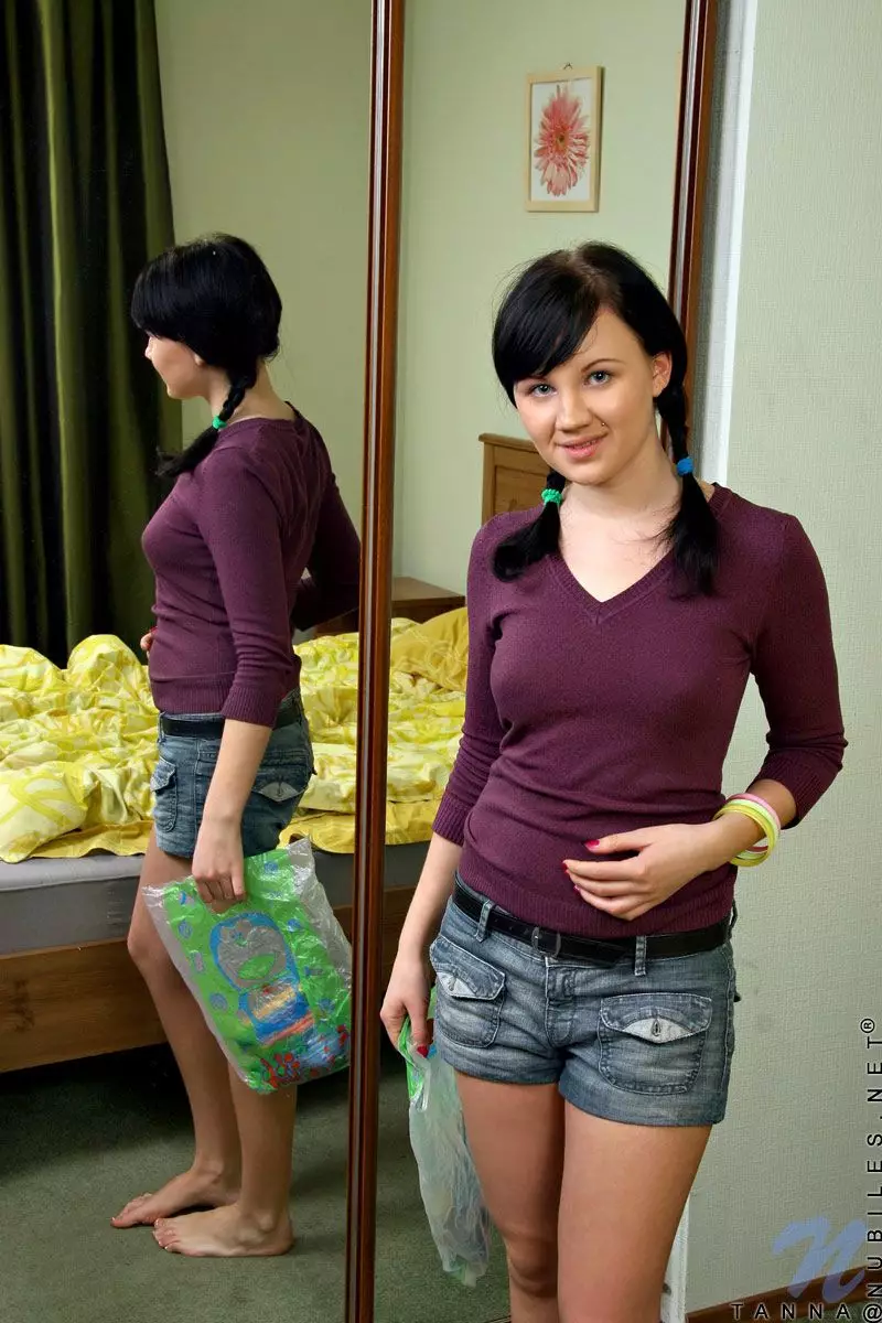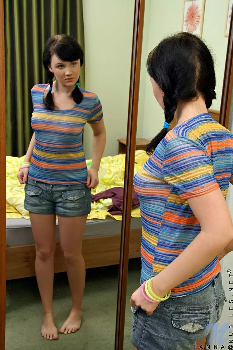 Темноволосая малолетка Tanna Nubiles оценивает свою очаровательную попку и безволосую киску в зеркале — Tanna Nubiles