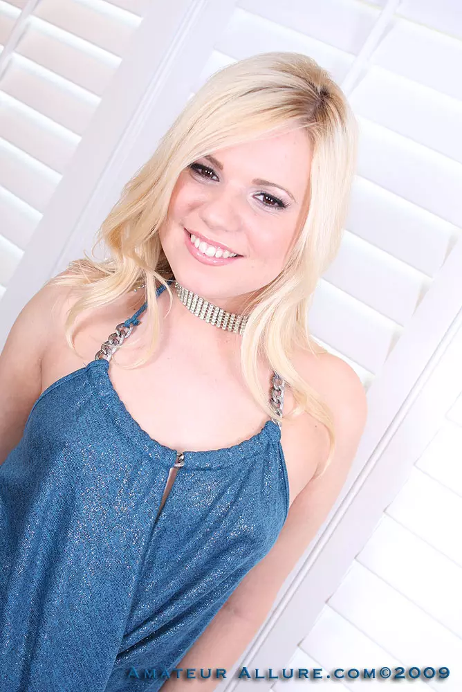 Yasmine Gold в коротком голубом платье показывает бритую пизду и сосет хер, пока тот не кончит — Yasmine Gold
