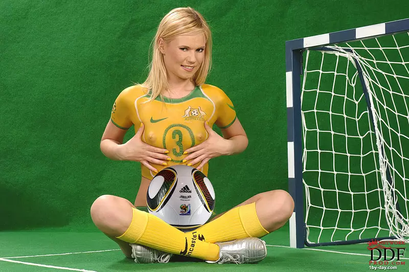 Красотка с рисунками на теле Yasmine Gold утверждает что одела зелено-желтую футбольную форму — Yasmine Gold