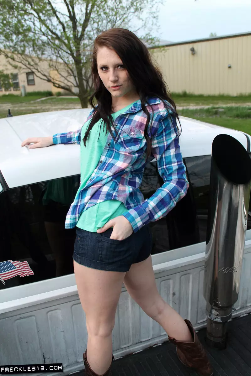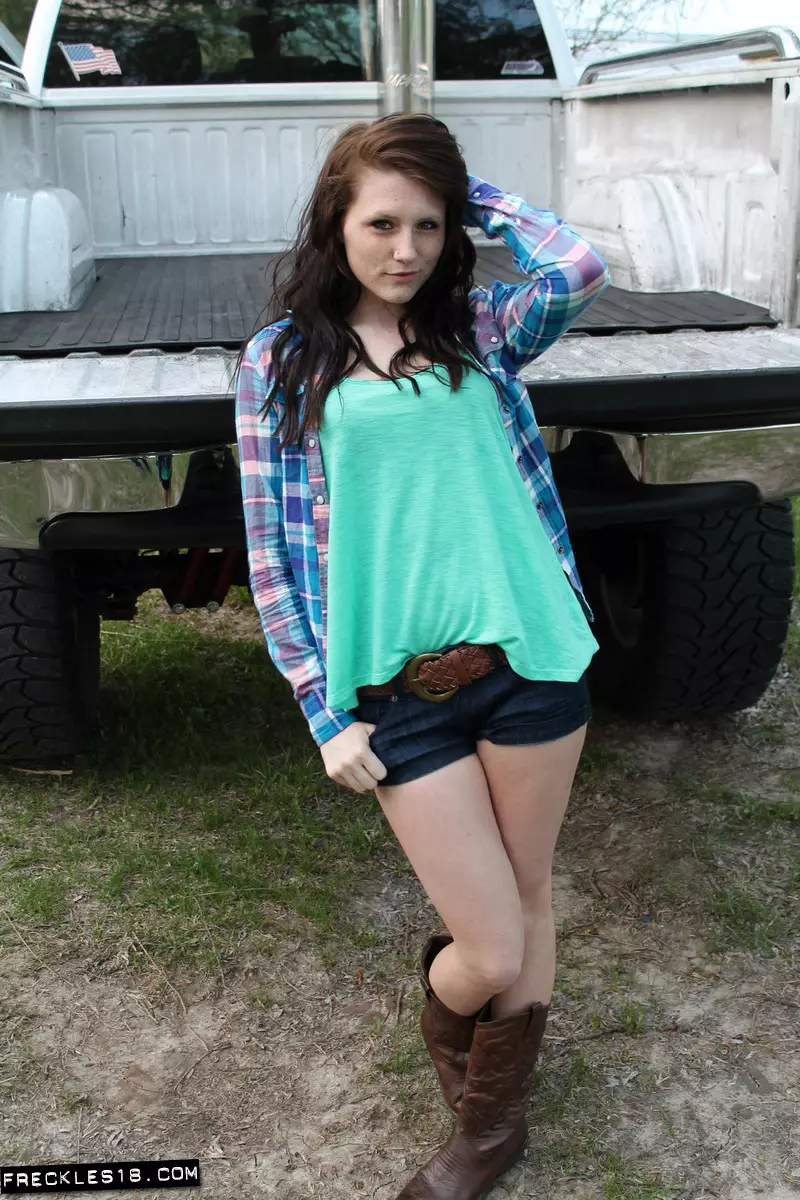 Шлюхастая деревенская детка Freckles хочет показать нам свое голое тело на природе — Freckles