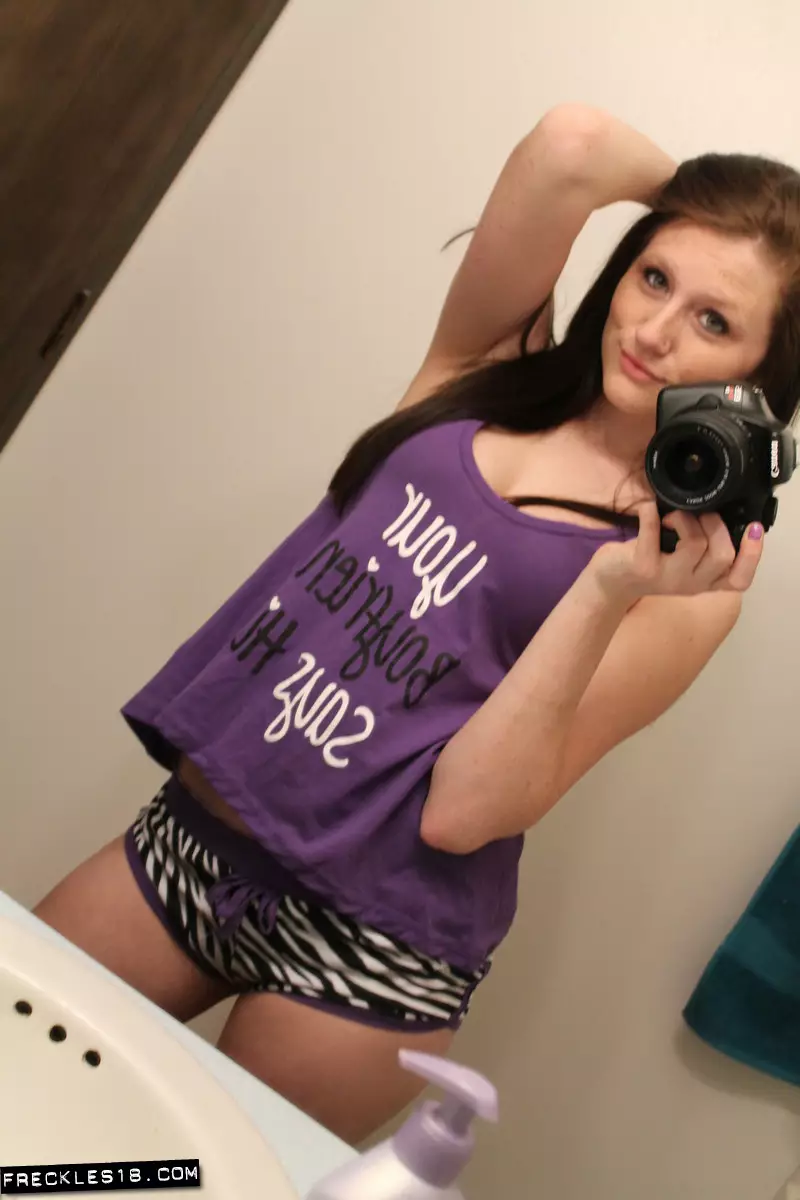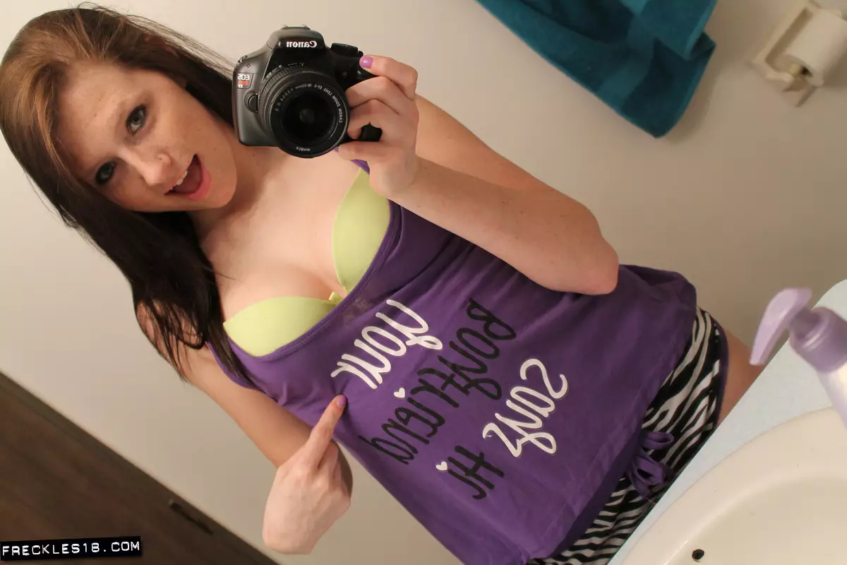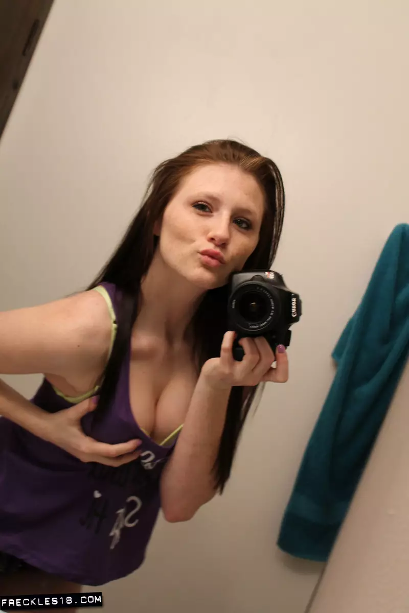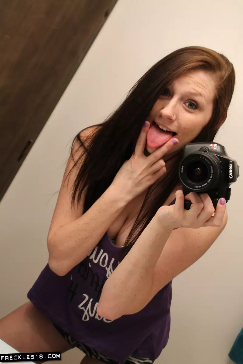Распутная брюнетка Freckles раздевается перед зеркалом и делает развратные снимки — Freckles